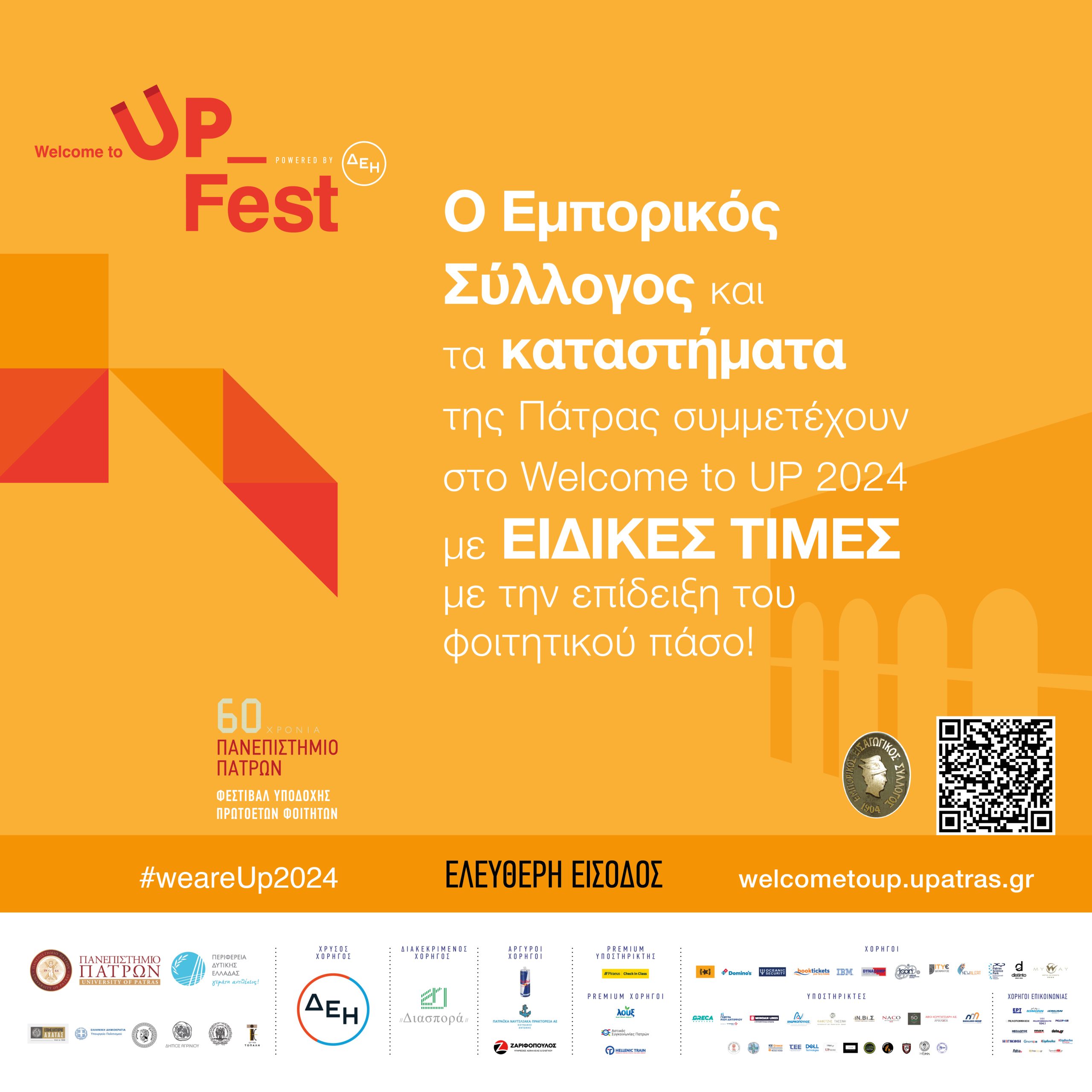 Welcome to Up 2024 και Εμπορικός Σύλλογος Πάτρας ρίχνουν τις τιμές για τους πρωτοετείς φοιτητές-τριες – Εκπτώσεις σε 143 καταστήματα