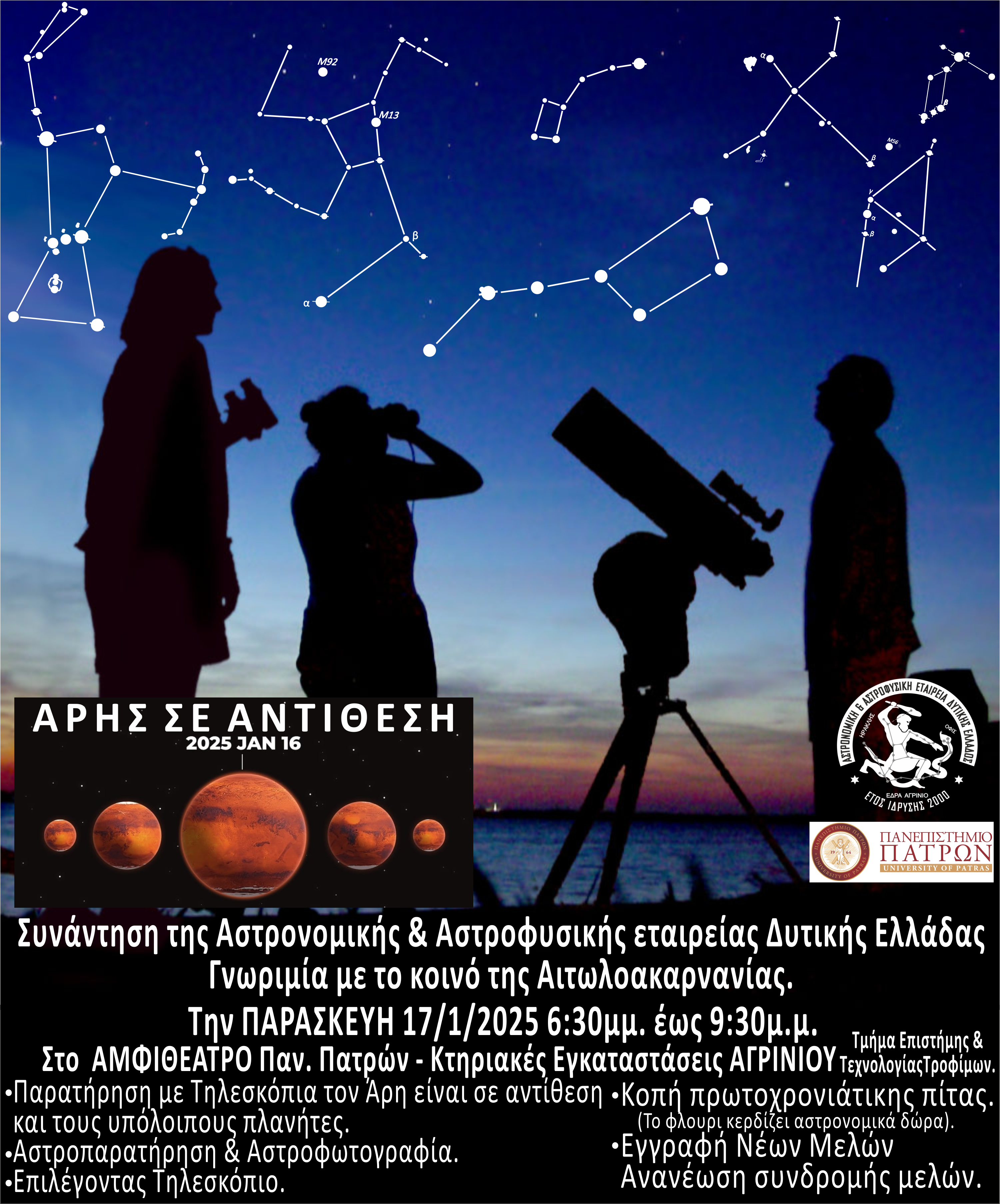 Η Αστρονομική και Αστροφυσική Εταιρεία Δυτικής Ελλάδας – “Ηρακλής” προσκαλεί το κοινό της Αιτωλοακαρνανίας στη πρώτη συγκέντρωσή της για το 2025.