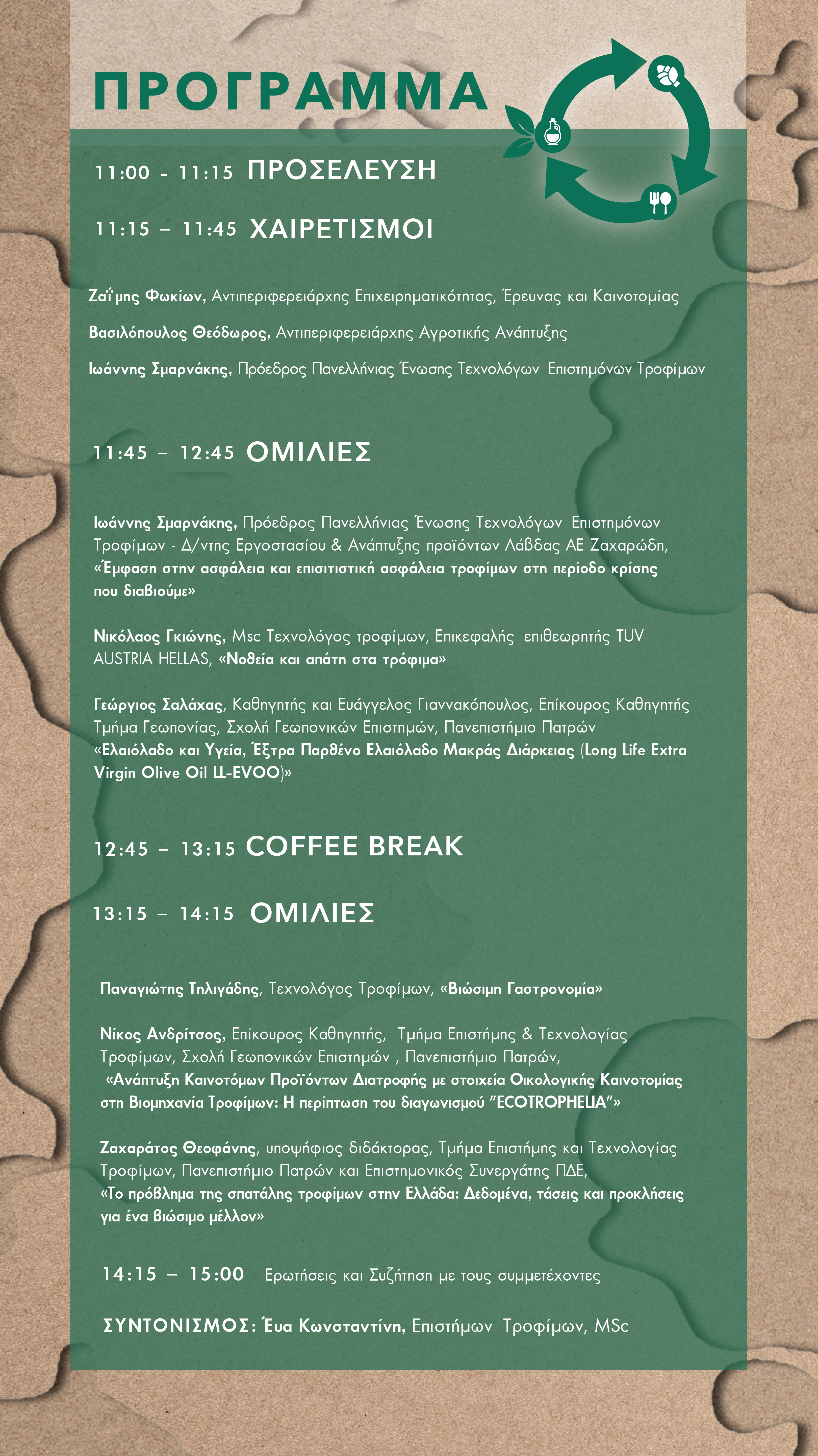 Πρόσκληση σε ημερίδα της Πανελλήνιας Ένωσης Τεχνολόγων Επιστημόνων Τροφίμων και του Πανεπιστημίου Πατρών